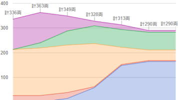 従来、形式別車両概要を掲載してきましたが、配置区ごとに車両概要をまとめた配置別車両概要を新規追加しました。側面写真や、形式別車両概要を公開していない形式の編成図は掲載していませんが、過去6年分の電車配置の推移が確認できます。その他、従来「X...